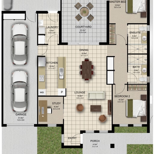 Two Bedroom + Study | Villas