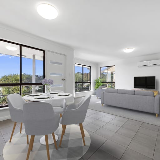 Hillsview's three-bedroom villas feature spacious open-plan living areas, a modern kitchen, built-in wardrobes and single attached lock-up garage.