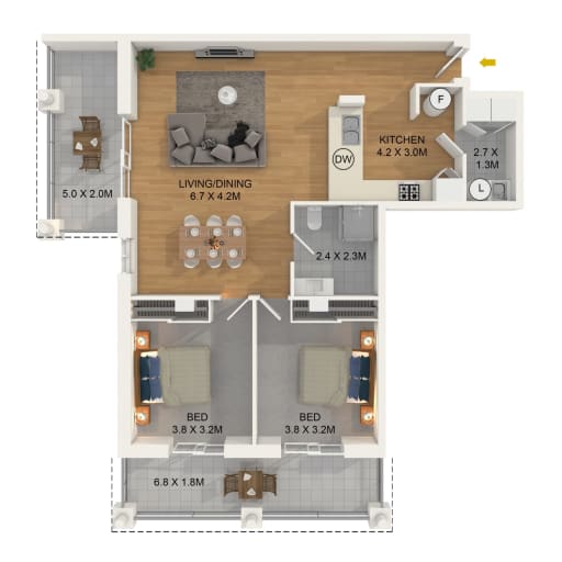 - Spacious two bedroom