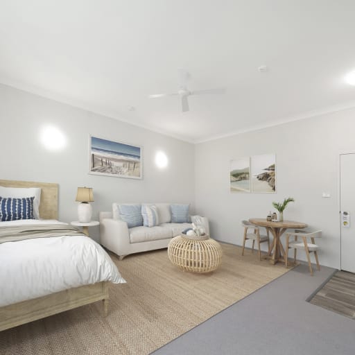 - Generous sized living area allowing plenty of room for lounge suite, dining suite and a king sized bed