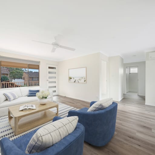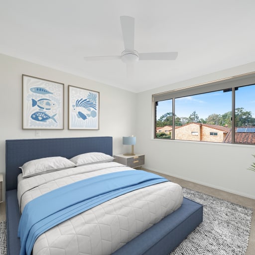 Fully renovated upstairs unit facing north and presents beautifully. Complete with brand new modern kitchen and bathroom, new flooring and blinds, ceiling fans and air con, it's ready to go! This unit has a great elevated outlook at both the font and back and a detached garage is available nearby.
