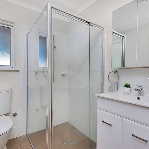 - Bathroom with large shower