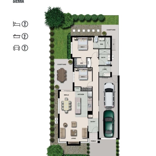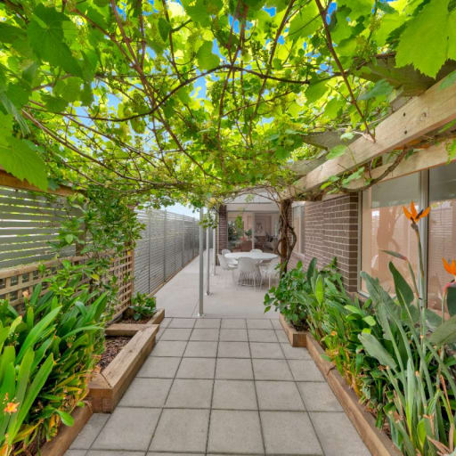 Enjoy a sunny courtyard off the main living space, plus the convenience of a large modern bathroom, garden shed, and tandem garage.