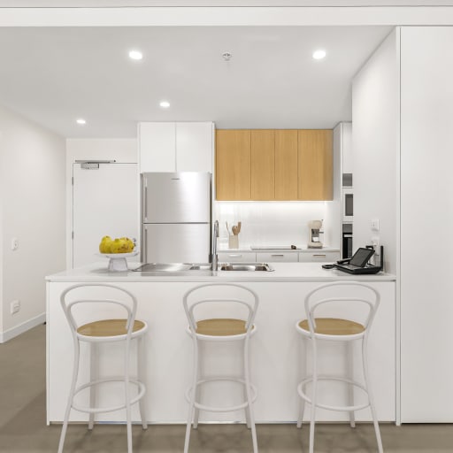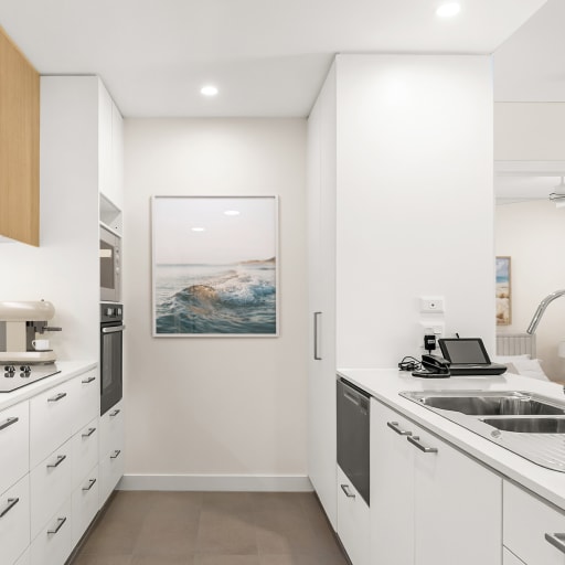 - Modern kitchen featuring stone benchtops and dishwasher
