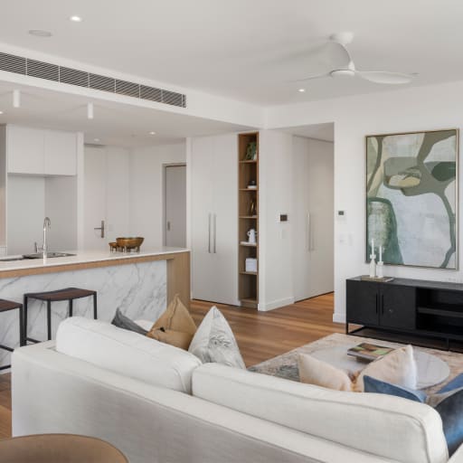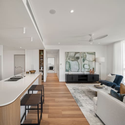 Sophisticated Living Spaces: Open-plan layouts designed to maximise natural light and airflow, complemented by beautiful window furnishings and designer lighting.