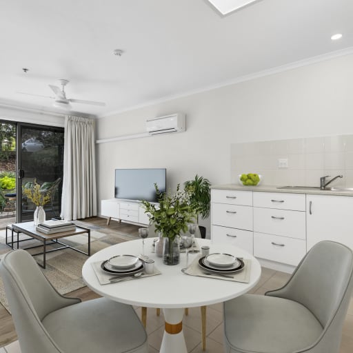 Moving into a a retirement village doesn't mean that you have to compromise on your independence. Levande provides the option of living in a serviced apartment, where you can enjoy all the benefits of living independently in a retirement community and still have help close at hand if you need. Right in the heart of our retirement village, our studio apartments are located on the ground floor featuring a light-filled open-plan living area, a modern kitchenette, user friendly bathroom and views of lovely gardens.