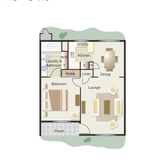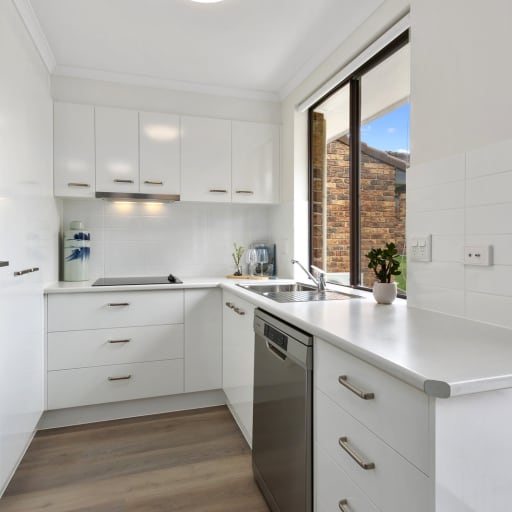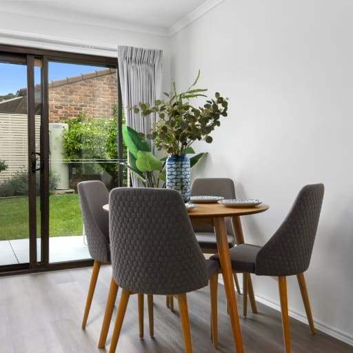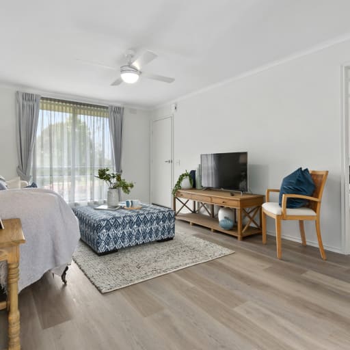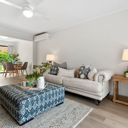 Our low-maintenance one-bedroom villas feature a spacious living area with air-conditioning and a bright dining and kitchen area that looks out onto the rear patio, a car space and a 24-hour emergency call system for added security.