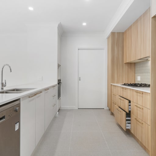 - Modern kitchen with stone benchtops, select Westinghouse appliances and ample storage